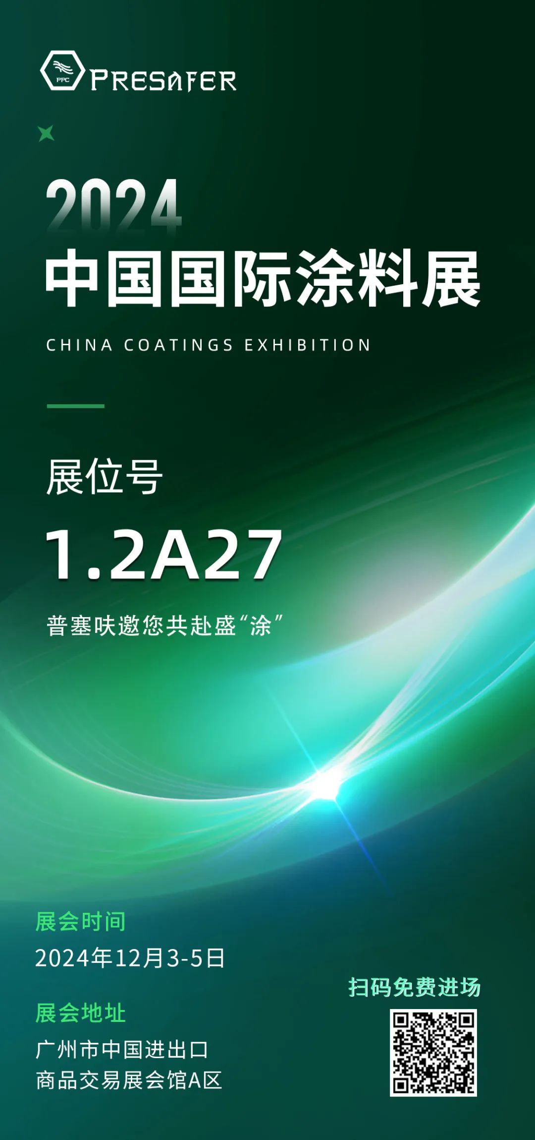 The 2024 International Coatings Exhibition (CHINACOAT) will be held from December 3 to 5 at Area A of the China Import and Export Fair Complex in Guangzhou. We cordially invite you to visit Presafer (a subsidiary of Polyrocks Chemical) at Booth 1.2A27!