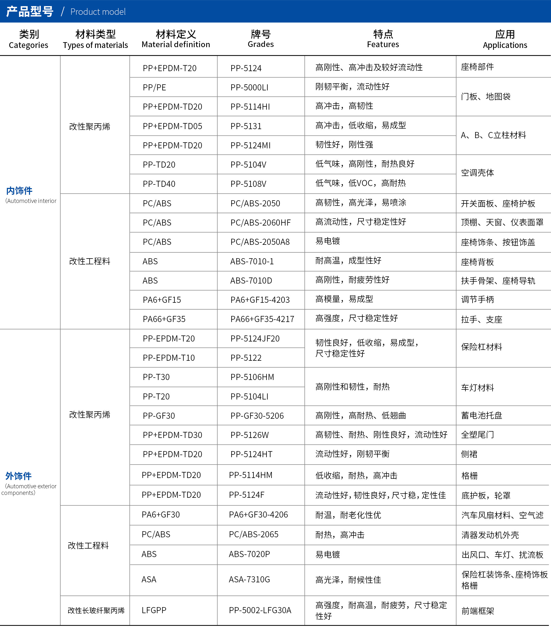 产品介绍:以玻璃纤维为增强剂的聚丙烯增强材料,采用独特的工艺技术,保证了玻璃纤维长度及在PP基材中的分散与分布,玻璃纤维与PP基材的结合 产品特征:低VOC、高流动性、抗冲击性强