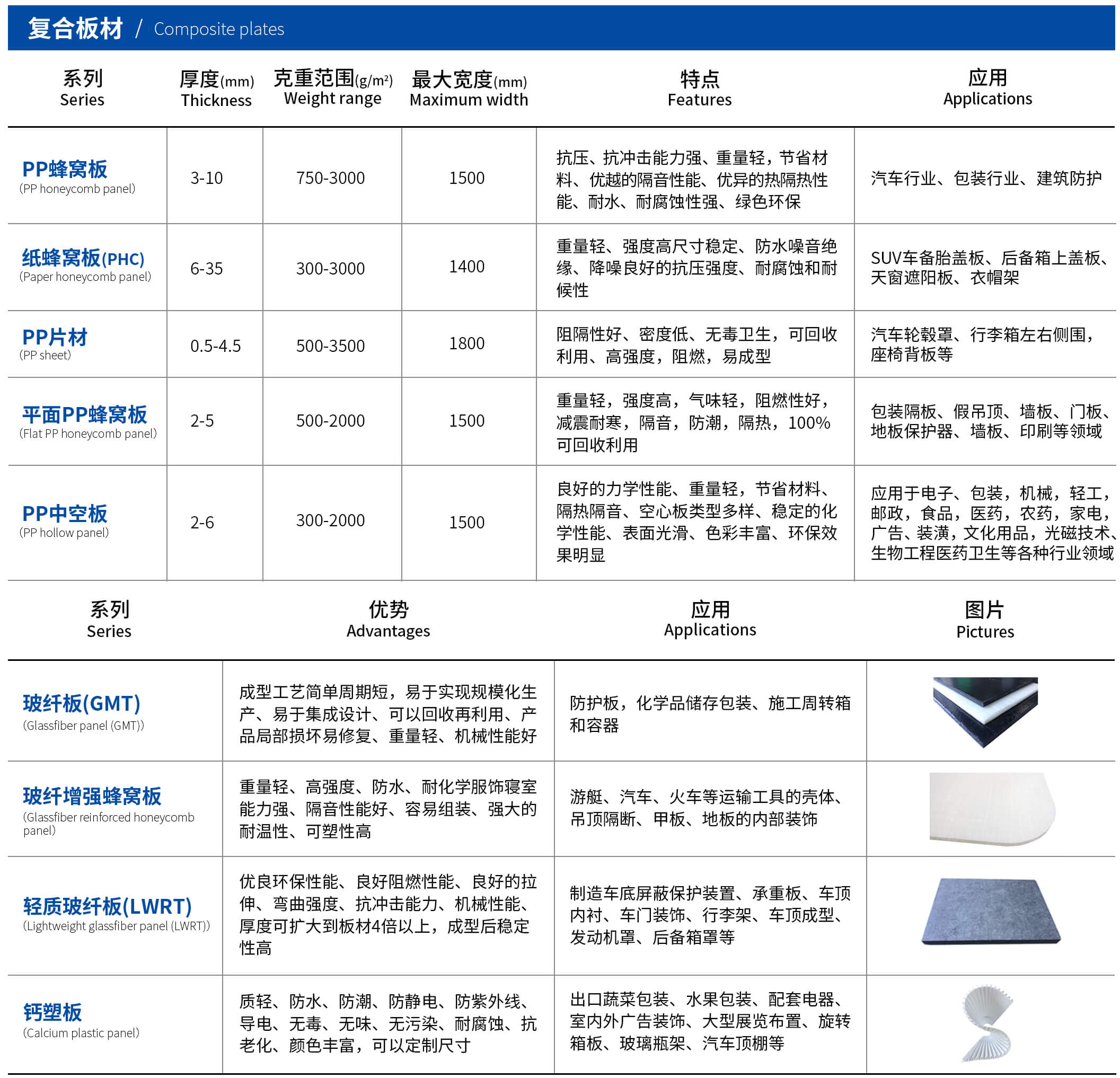 产品介绍:永利中国复合以复合板材为业,快速为客户提供量身定做的汽车内饰PP蜂窝板、GMT板、PHC板、CPP片材、玻纤增强PET发泡板、玻纤增强复合蜂窝板等各类结构性材料。
